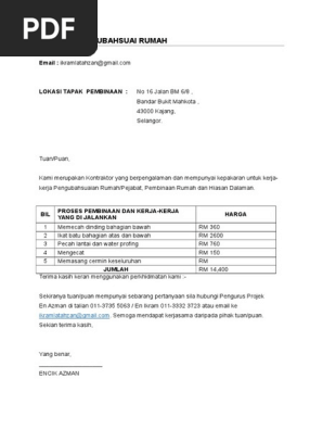 Contoh Invoice Ubahsuai Rumah Grills Zubehor