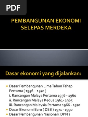 Pembangunan Ekonomi Di Malaysia Disediakan Oleh Rehnuga A P Mayil Wahanam Unit Sejarah