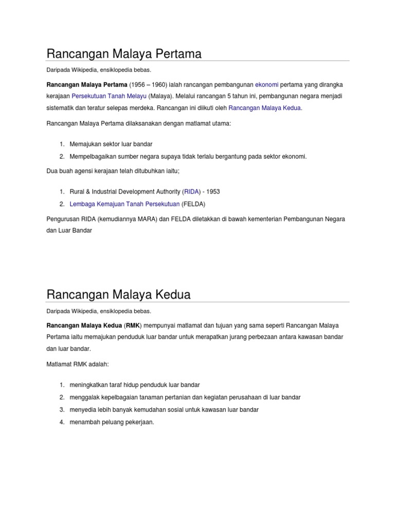 Rancangan Malaysia Pertama Pdf Semua Jadual Di Atas Adalah Dalam Fail Portable Document Format Pdf Di Pdf Document