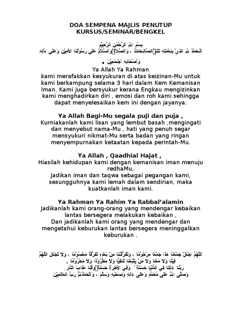 Doc Doa Sempena Majlis Penutup Kursus Dzul Hilmi Mohd Jani Academia Edu