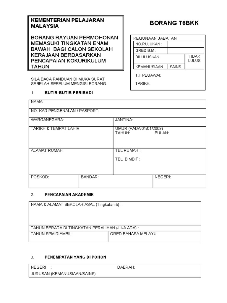 Borang Permohonan Rayuan Tingkatan 6 Kpm 2020