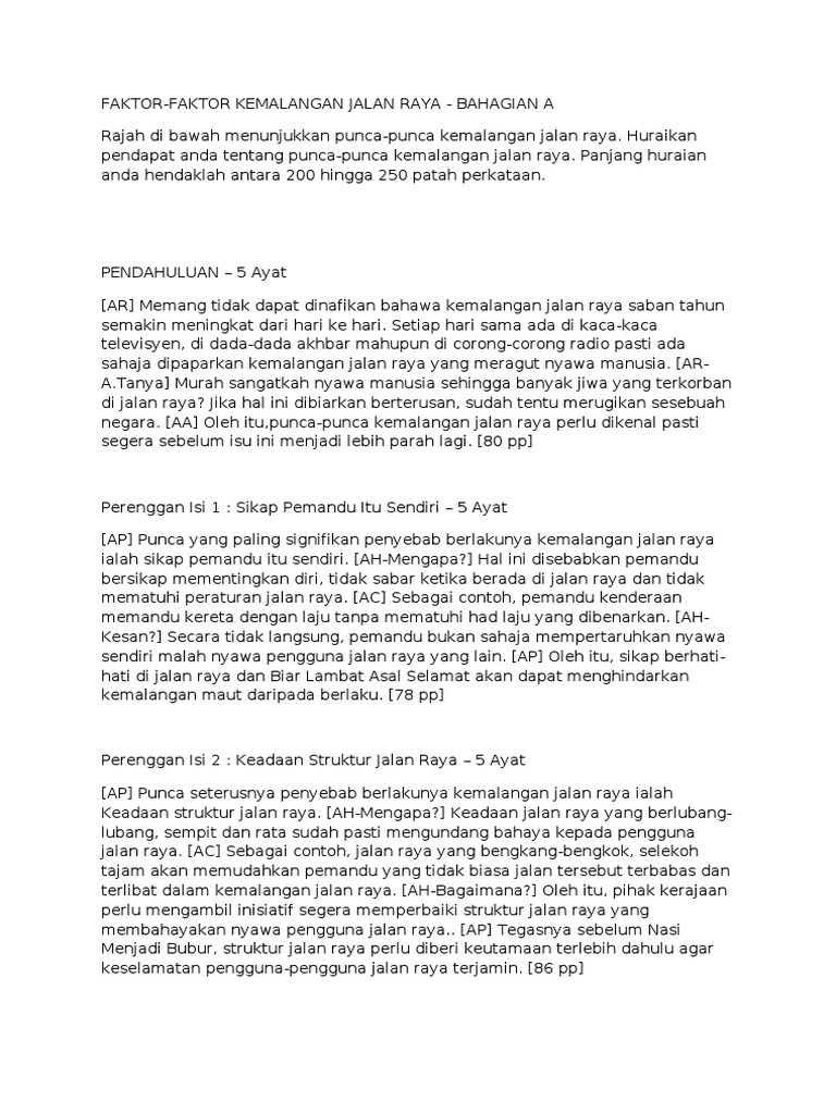 Cikgu Sabar Mohd Karangan Tingkatan 3 Faktor Faktor Berlakunya Kemalangan Di Jalan Raya