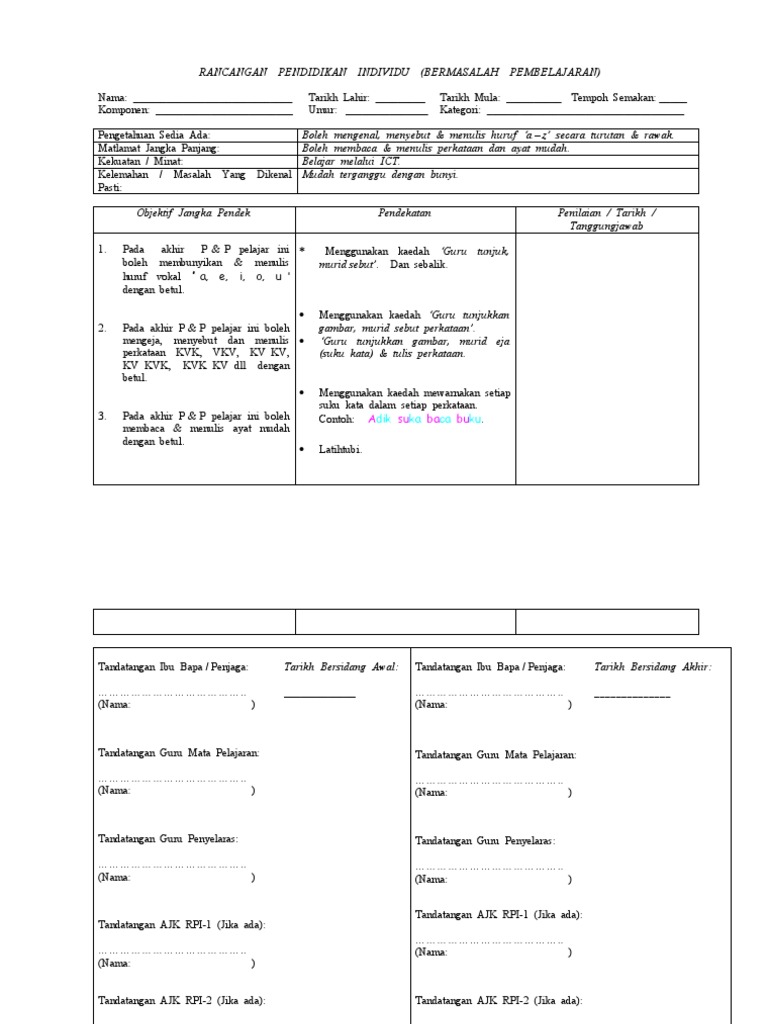 Rpi Borang Format Rancangan Pendidikan Individu