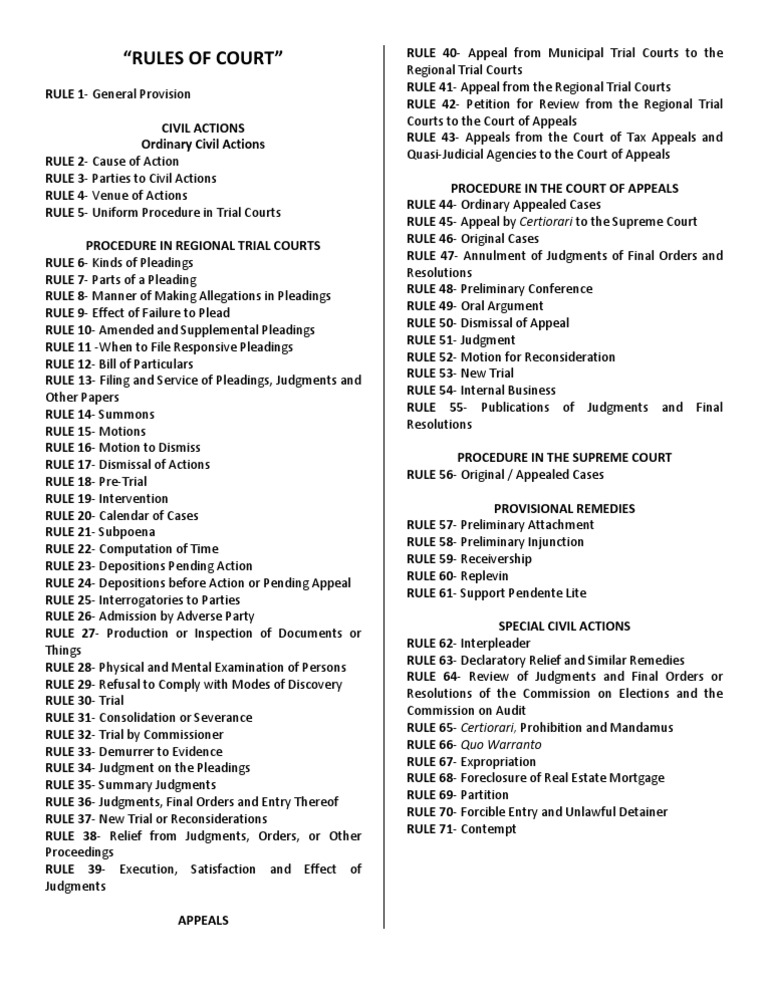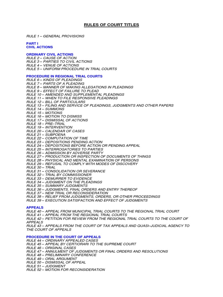 Rules Of Court Titles Pleading Lawsuit