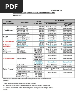 Lampiran C2 Kadar Sewaan Rumah Peranginan Persekutuan Eksekutif
