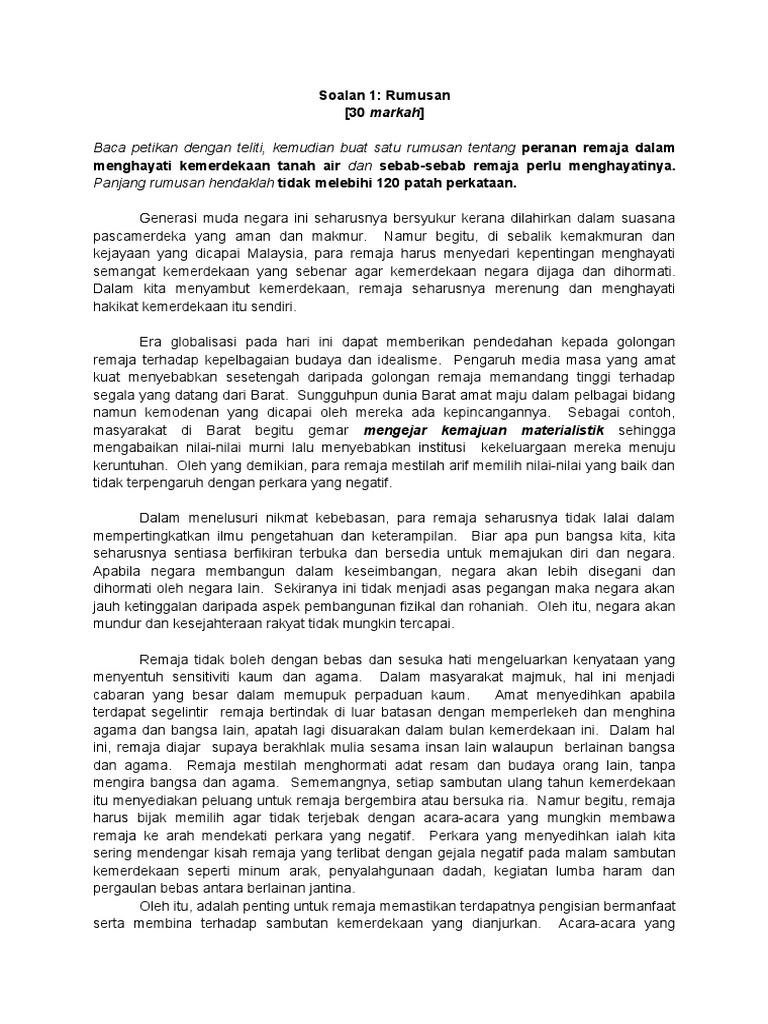 Skema Jawapan Spm 2018 Bahasa Melayu Kertas 2