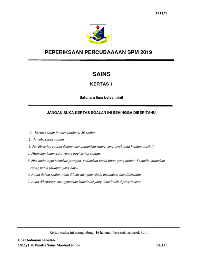 Percubaan Spm 2019 Sains Sumber Pendidikan