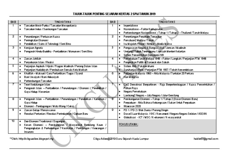 Tema Umum Sejarah Kertas 3 Spm 2020 Negara Dan Tema