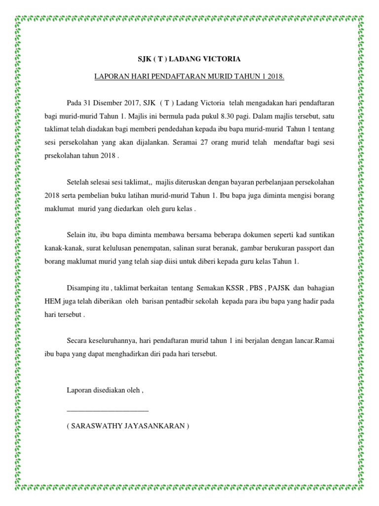 Senarai Semak Keperluan Pendaftaran Pelajar Tahun 1