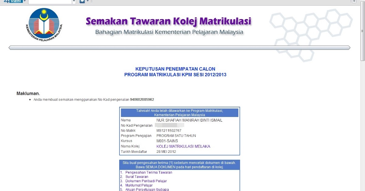 Semakan Keputusan Matrikulasi 2016 2017 Online Cerita Budak Sepet