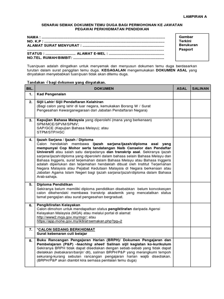 Luggage Oren Reben Merah Contoh Borang Senarai Semak Dokumen Temuduga Spp