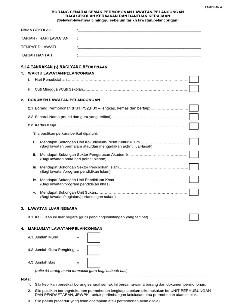 Senarai Semak Permohonan Kebenaran Lawatan Murid