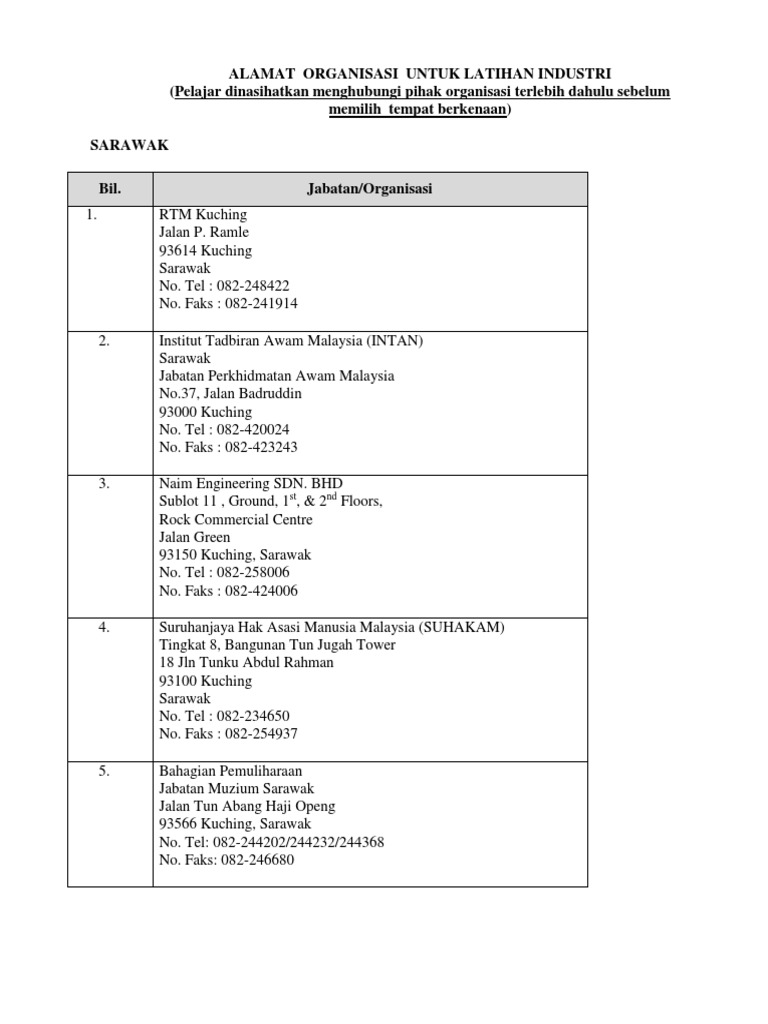 Senarai Organisasi Untuk Latihan Industri 2012 2 Pdf Document