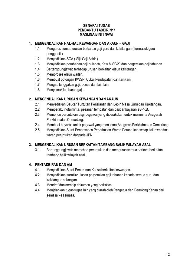 Senarai Tugas Pembantu Tadbir Gred N22