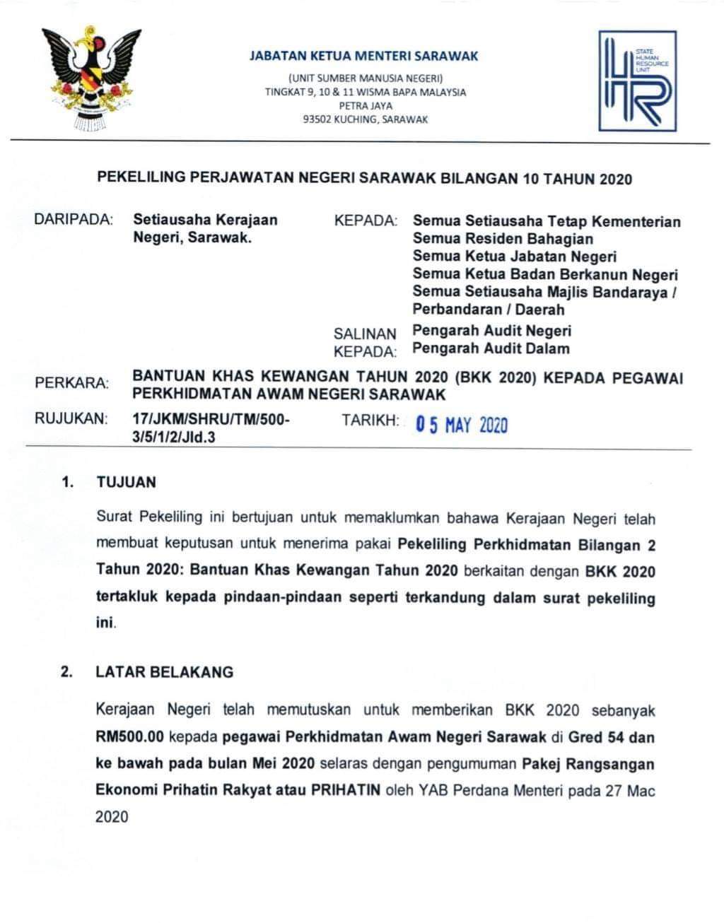 Sarawak Aritok On Twitter Kerajaan Negeri Telah Memutuskan Utk Memberikan Bkk 2020 Sebanyak Rm500 00 Kpd Pegawai Perkhidmatan Awam Negeri Sarawak Di Gred 54 Dan Ke Bawah Pada Bulan Mei 2020 Selaras Dgn