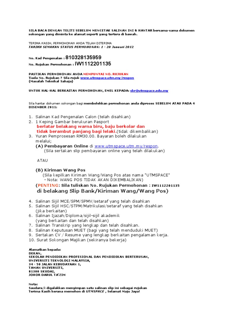 Rayuan Memohon Contoh Surat Rasmi