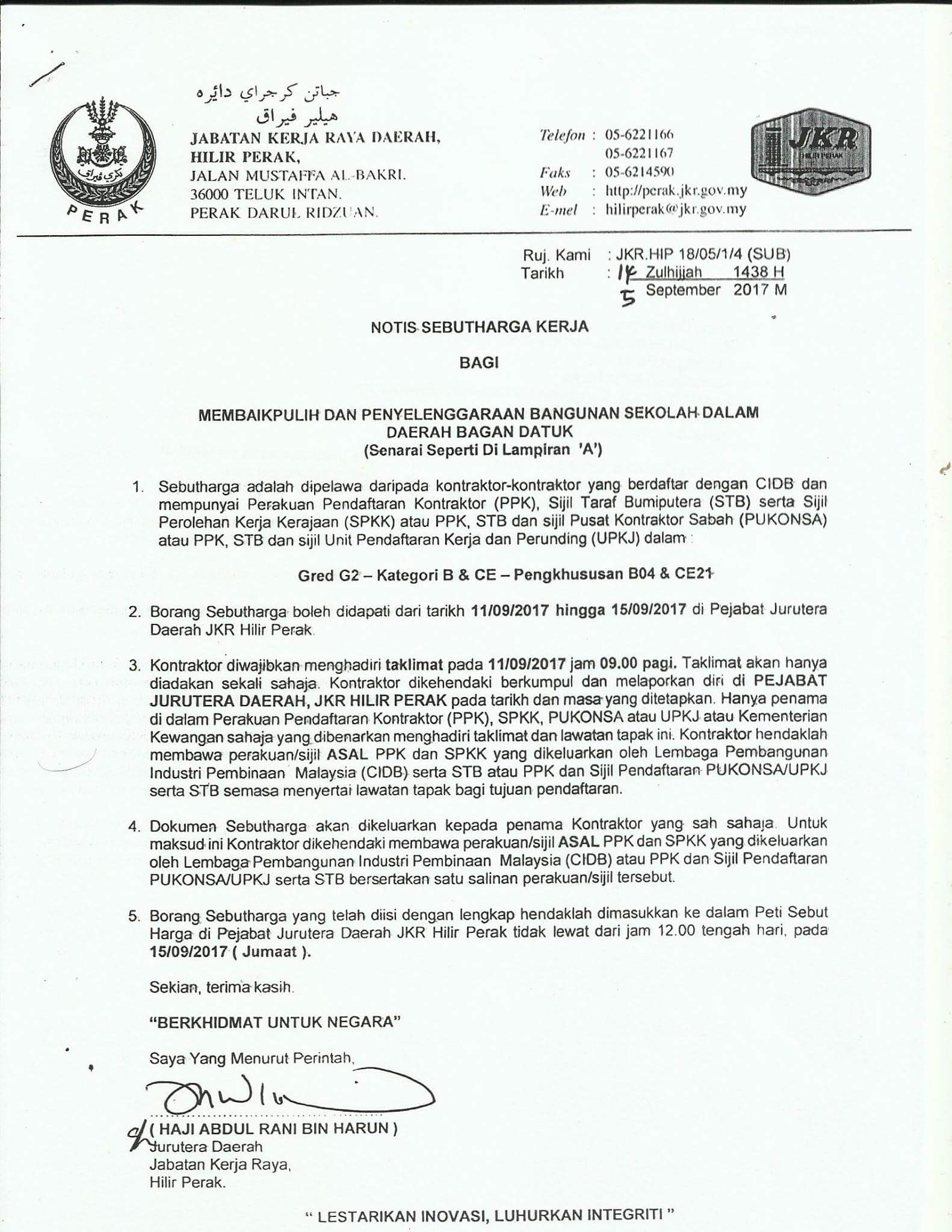 Jkr Hilir Perak Sur Twitter Terbuka Kepada Kontraktor Kelas G1 Dan G2 Jkrperak Jkrmalaysia