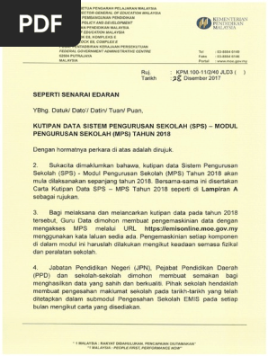 1 1 Surat Kpm Kutipan Data Sps Modul Pengurusan Sekolah 2018 Pdf