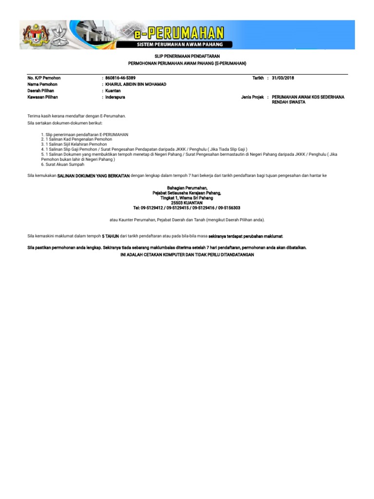 Aku Anak Pahang Panduan Permohonan Online Perumahan Awam Negeri Pahang Darul Makmur