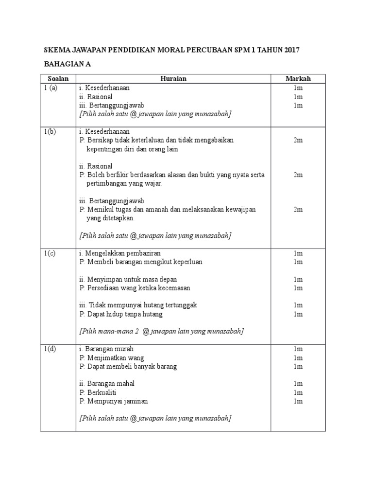 Skema Jawapan Pendidikan Moral 2017 Ar3