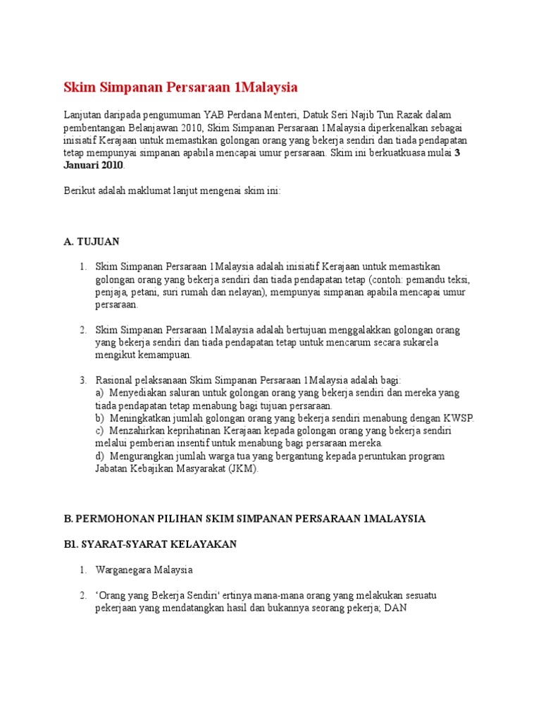 Skim Simpanan Persaraan 1malaysia Januari 2010