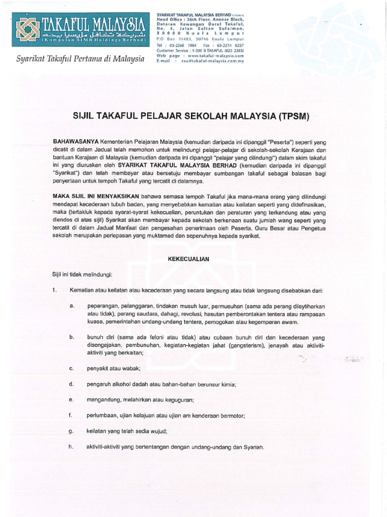 Skim Takaful Pelajar Sekolah Malaysia Tpsm 2020 Tuntutan Perlindungan Pelajar Percuma Edu Bestari