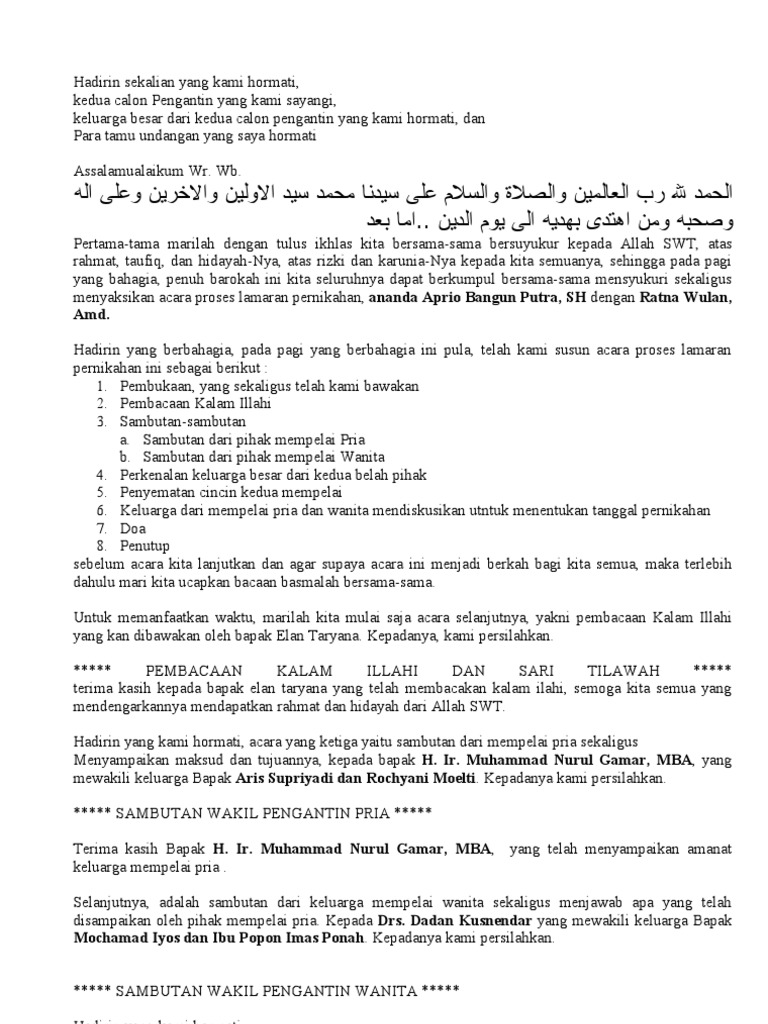 Contoh Naskah Pembawa Acara Lamaran Pernikahan