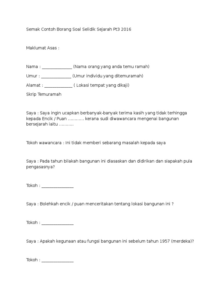 Contoh Borang Soal Selidik Temu Bual Tugasan Sejarah Pt3 Cute766