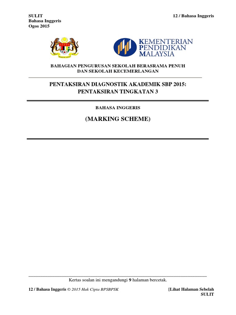 Sbp Pt3 Trial Bahasa Inggeris Skema 2015 Educational Assessment Rubric Academic