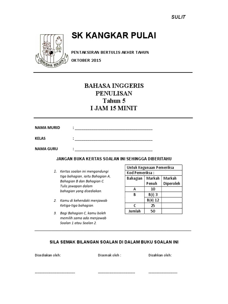 Soalan Bahasa Inggeris Tahun 5 Penulisan Persoalan N