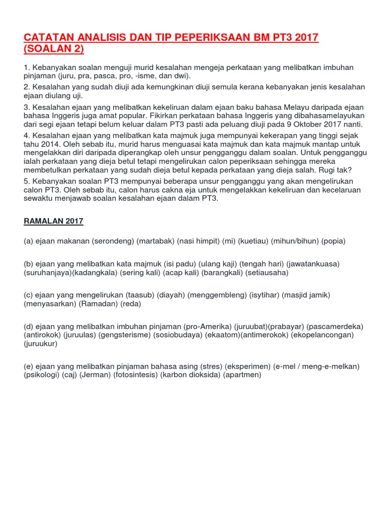 Catatan Analisis Dan Tip Peperiksaan Bm Pt3 2017