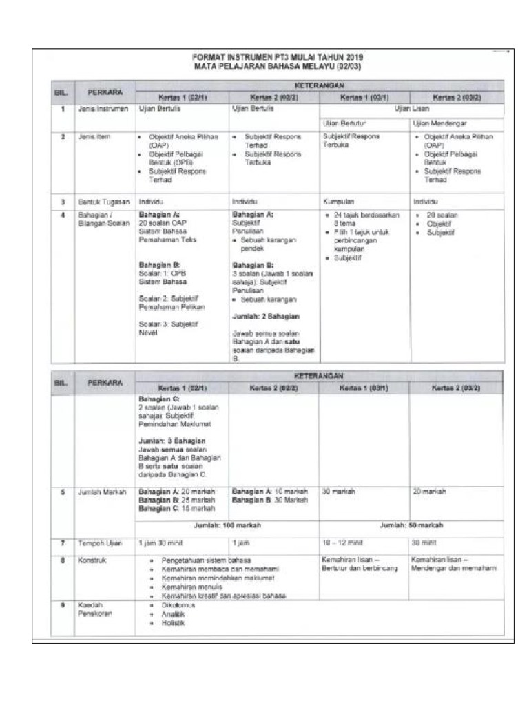 Perbandingan Format Baru Bm Upsr Dengan Pt3 2019