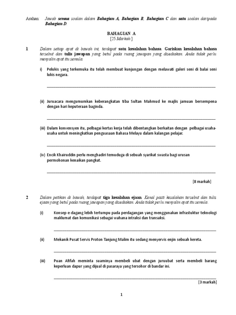 Tahun 1 Bahasa Melayu Latihan