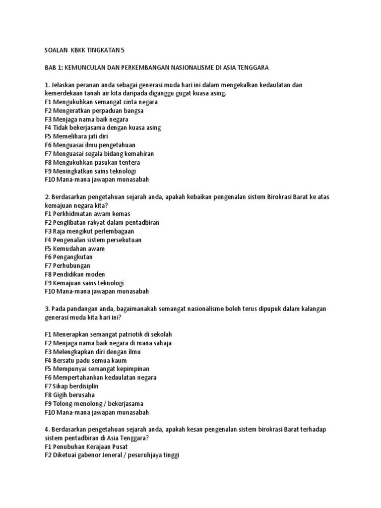 Contoh Soalan Kbat Sejarah Bab 8 Tingkatan 5 Soalan As