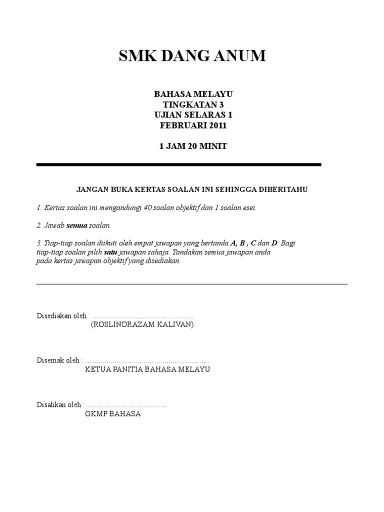 Contoh Soalan Objektif Bahasa Melayu Tingkatan 2 Malacca O