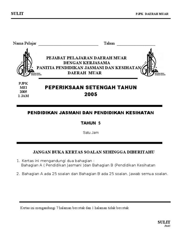 Ujian Pjk Tahun 5 Setengan Tahun 2013