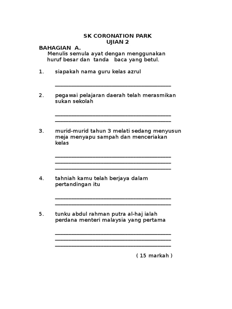 Ujian Penulisan Bahasa Melayu Tahun 3 Education Image