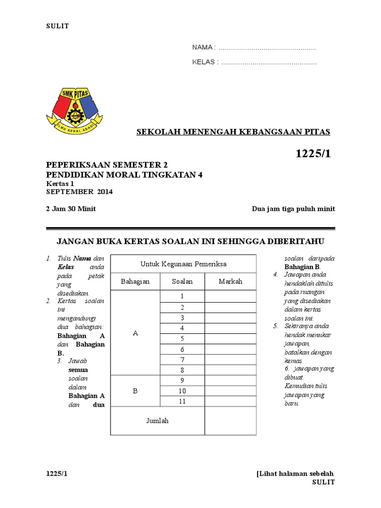 Soalan Percubaan Pendidikan Moral Spm 2018