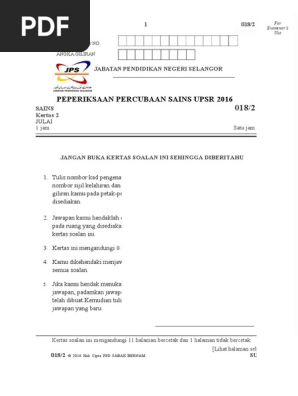 Soalan Percubaan Upsr 2016 Negeri Pahang Subjek Sains Kertas 1 Dan Kertas 2