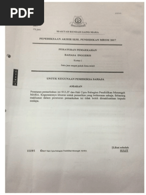 Skema Jawapan Soalan Percubaan Spm 2017 Bahasa Inggeris Mrsm Kertas 1 Dan Kertas 2 Pdf