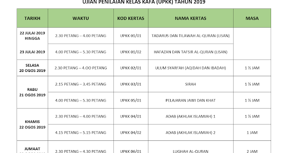 Jadual Peperiksaan Upkk 2019 Terkini Persatuan Guru Guru Sar Kafa Daerah Kuantan