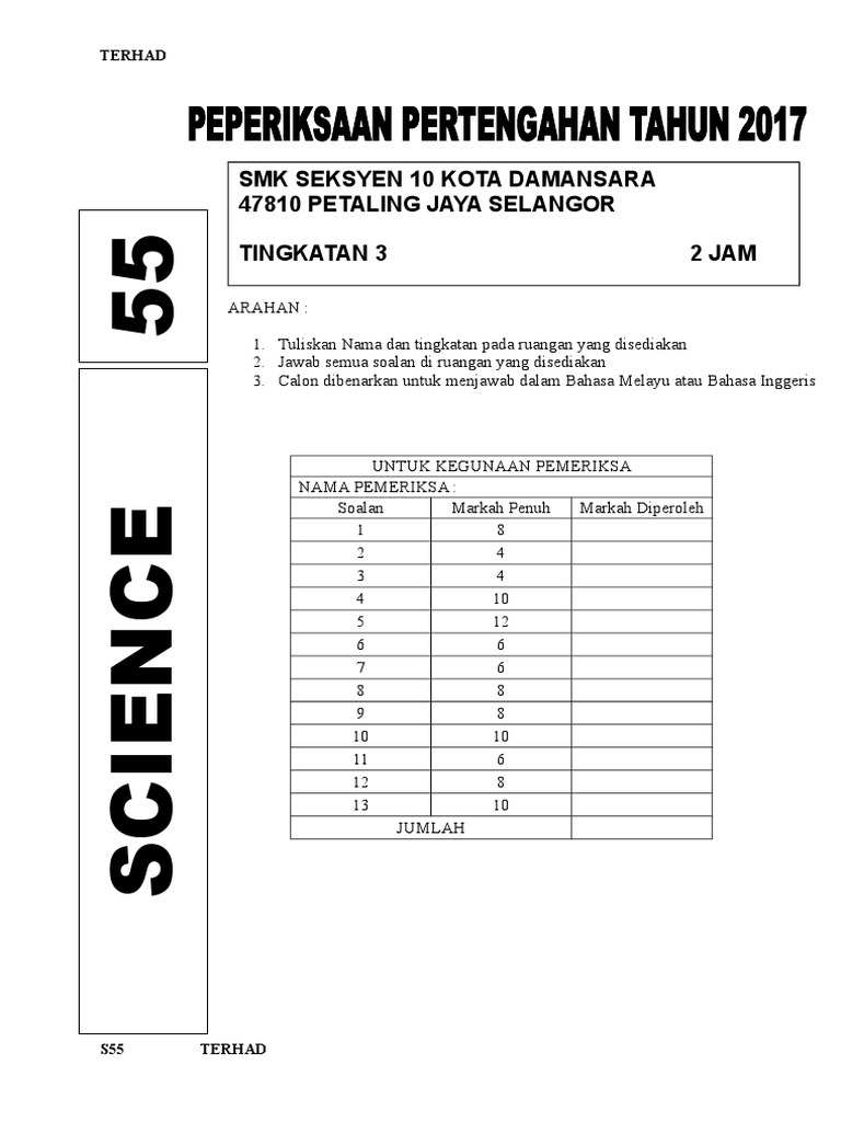 Contoh Soalan Pt3 Negeri Terengganu T Soalan