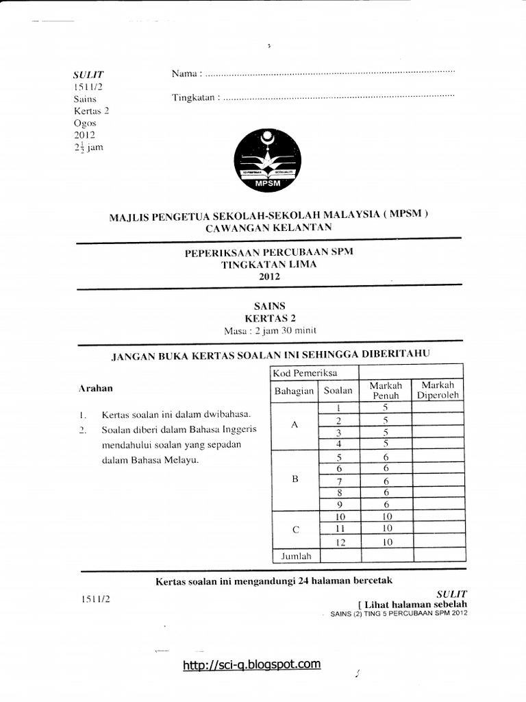 Kertas Soalan Sains Spm Kertas 2 An Tahun Tingkatan 4