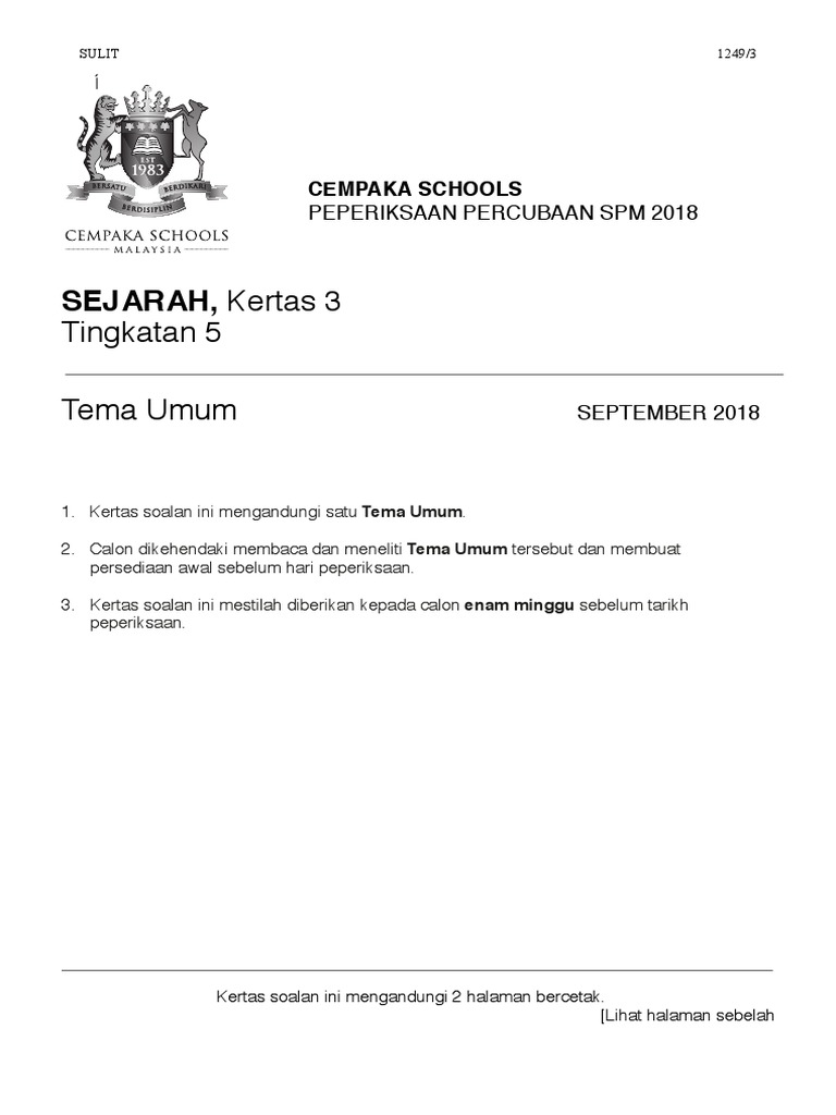 Tema Umum Sejarah Kertas 3 Spmu 2018 Tamadun Awal Manusia Pendidikan Malaysia