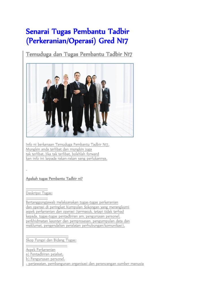 Senarai Tugas Pembantu Tadbir