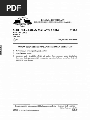 Trial Kedah 2014 Spm Bahasa Cina K1 Dan Skema Scan Pdf Document