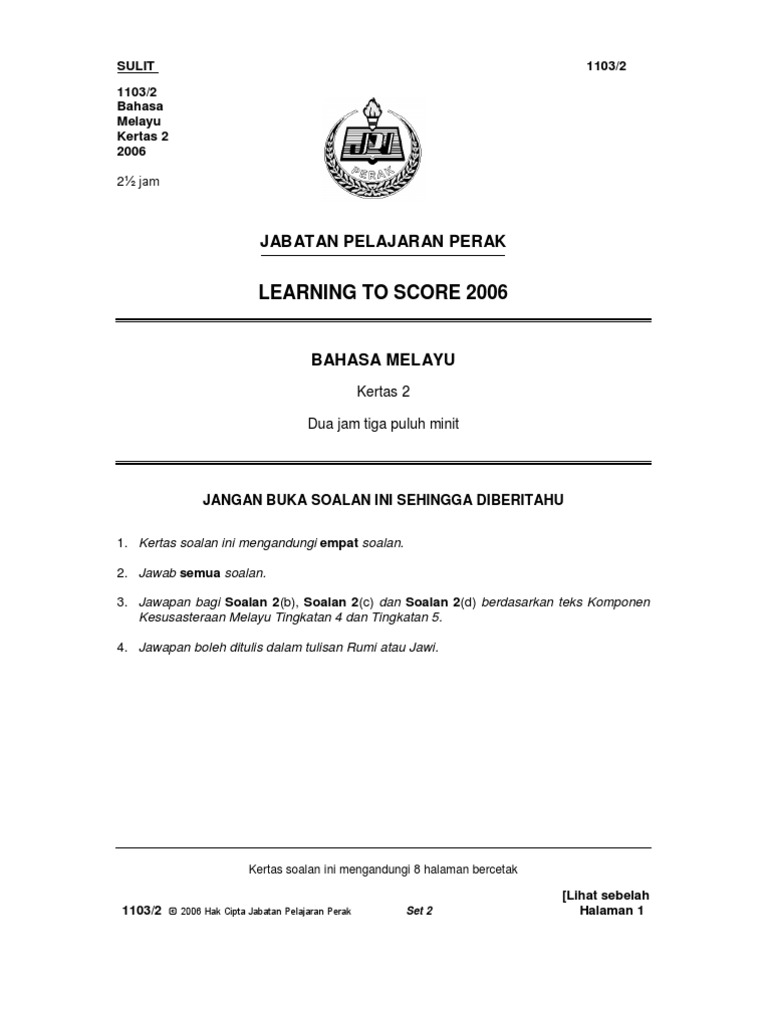 Spm Bahasa Melayu Spm Bm Kertas 2 Set 2
