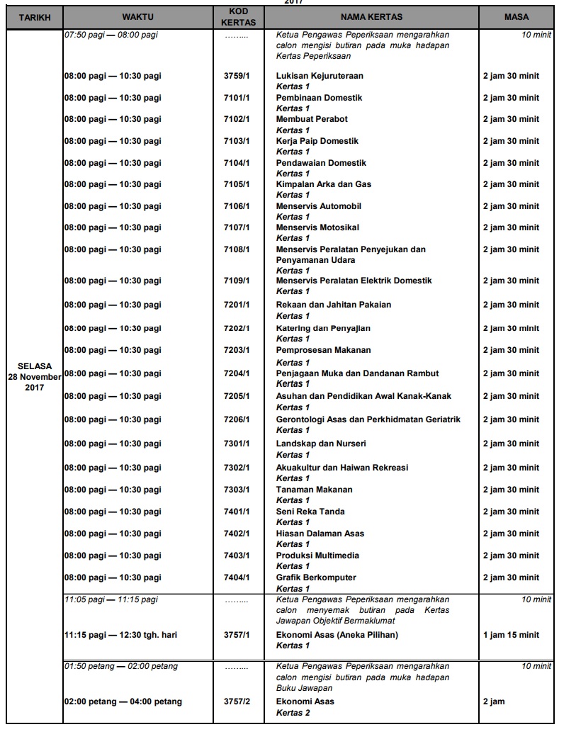 Spm Examination Timetable 2017 Jadual Waktu Peperiksaan Spm 2017 Studymalaysia Com