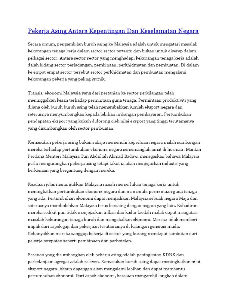 Doc Kedatangan Pekerja Asing Di Malaysia Wa Qeena Academia Edu