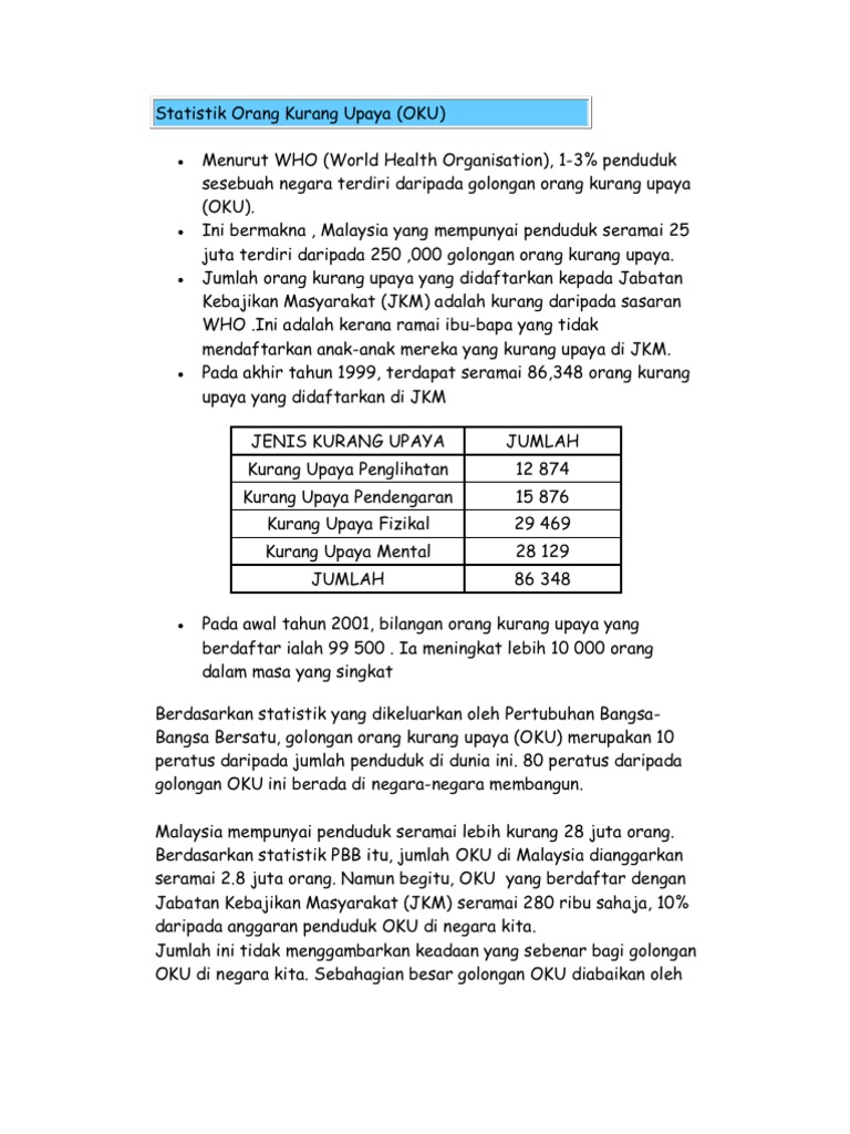 Kesejahteraan Orang Kelainan Upaya Oku Definisi Statistik Rangk